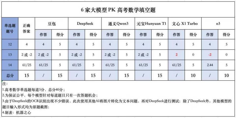 6大模型决战高考数学新一卷:豆包、元宝并列第一,OpenAI o3竟惨败垫底