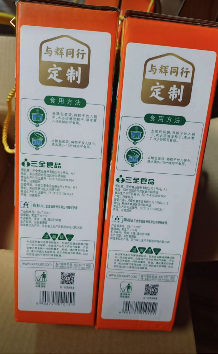 今年端午节前,董宇辉和五芳斋、三全合作,推出与辉同行的定制款粽子。合作方式是:与辉同行给商家提出生产需求,品牌方负责生产,包装上仅简单标注“与辉同行定制”,不贴牌。