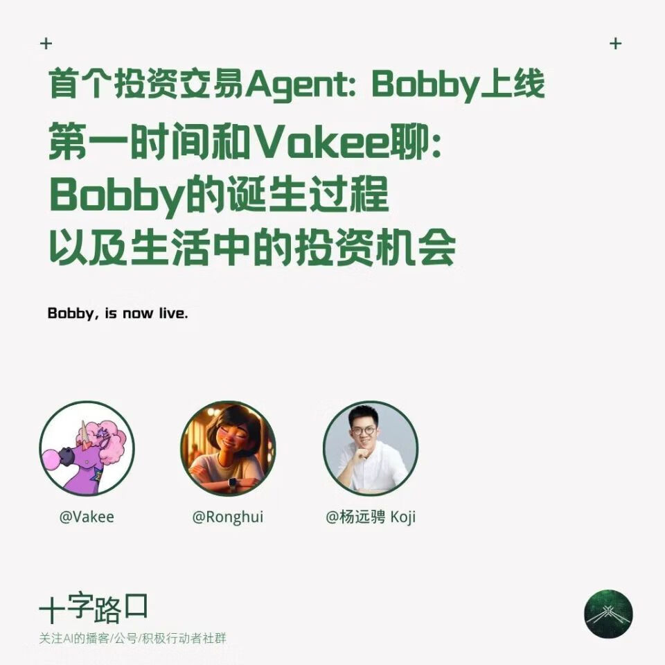 本周的十字路口,我们邀请到了 Vakee, Vakee 是 RockFlow 的创始人和 CEO,RockFlow 最近也推出了他们自己的 AI Agent 的产品,叫做 Bobby。
