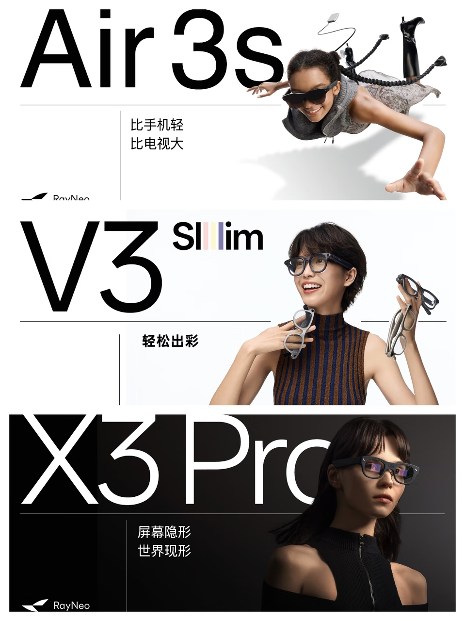 如今的雷鸟,已经形成完备的产品矩阵。从定位下一代智能终端的 X3 Pro,到大众娱乐场景的 Air 系列,再到智能拍摄的V3系列,无论是科技极客对 “个人智能终端” 的需求,还是普通消费者对 “口袋 3D 巨幕” 的期待,雷鸟都凭借自身的技术优势,和精准的用户洞察,在消费级AR眼镜市场交出了“全球第一”的答卷。