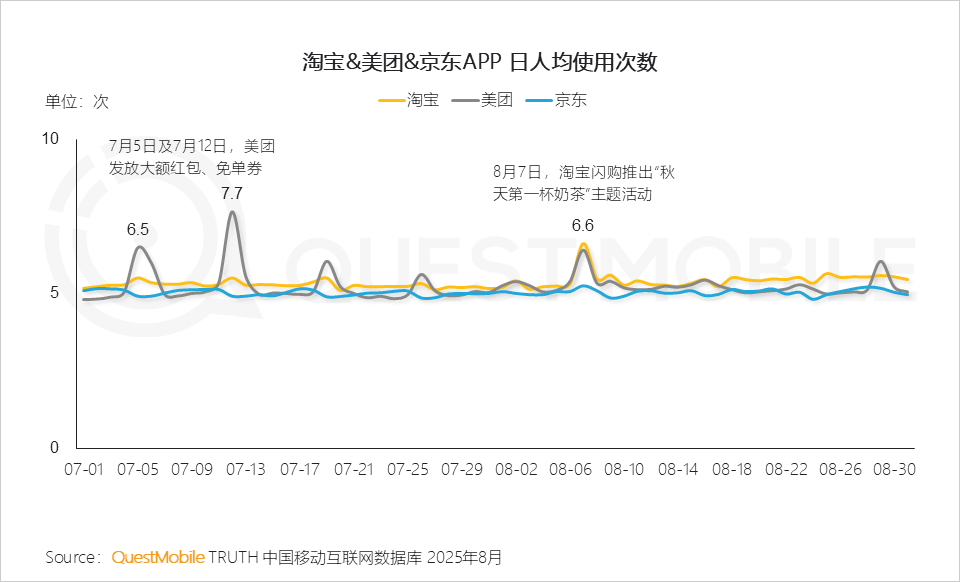 三大阵营构成了中国移动互联网生态级别的厮杀与对撞,对整个产业影响至深,而从总体数据上看,目前三大特点已经显现:首先,美团、拼多多同比下降了5.7%、10.1%,京东同比则上升了19.1%,反映出了上半年以来“传统电商+生活服务”的赛道级大拼杀仍在激烈进行中,各家都以各种补贴策略在各个渠道吸引用户,可以预见,最终结果将决定“零售”产业链上下游玩家的生存状态。