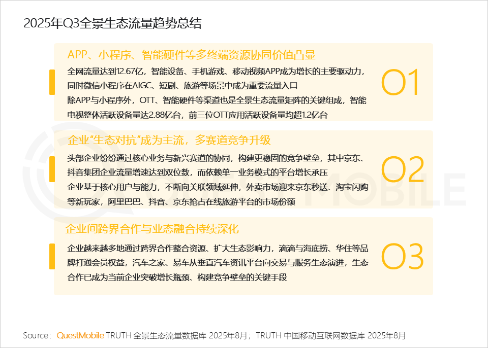 QuestMobile2025全景生态流量秋季报告:三大阵营“生态级”碰撞形成三大特点,零售此消彼长,华为系统、金山办公出现增长