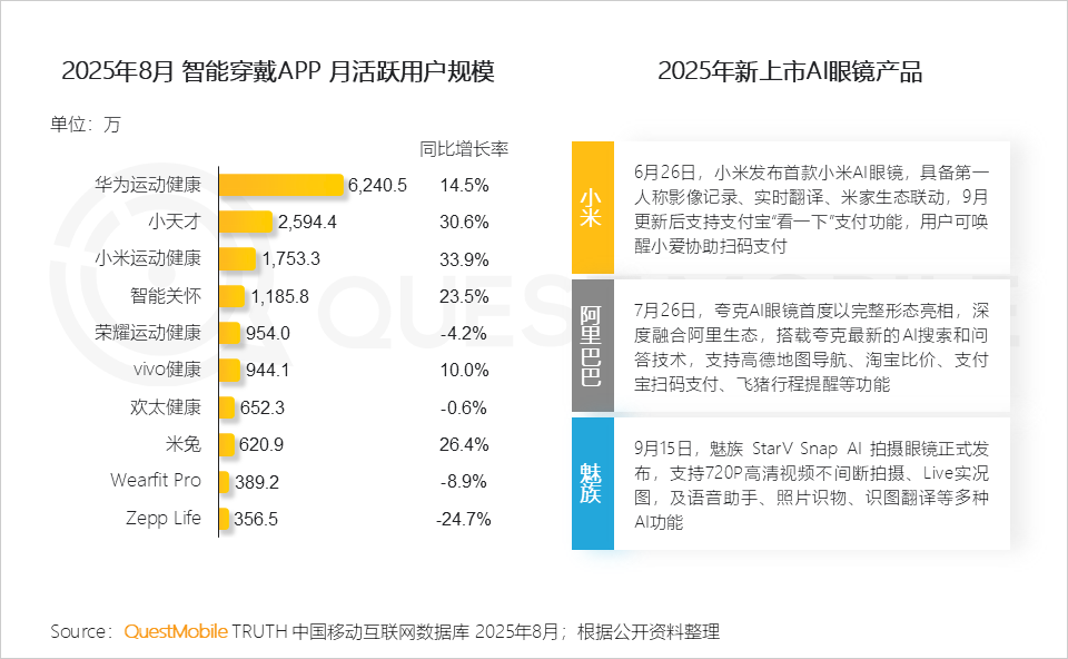 5、小米、阿里巴巴、魅族的AI眼镜产品集中上市,融合拍摄、翻译、支付、导航等功能,显示可穿戴设备正成为AI落地的重要载体,扩展用户使用场景