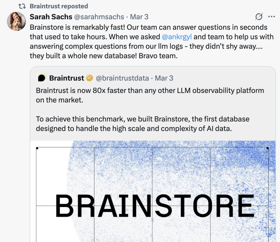Braintrust 作为初创企业,在前沿洞察上比 Datadog 更快。