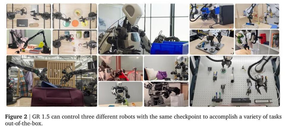 训练所用的机器人数据集是多本体(multi-embodiment)的,涵盖了数千个多样化任务,从抓取与操控,到双臂协作,再到人形机器人执行日常复杂任务。这些数据采集自多个异构机器人平台,包括ALOHA、Bi-arm Franka和Apollo人形机器人。