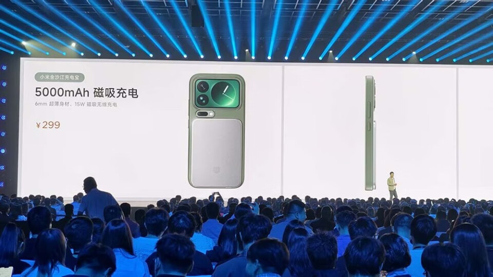 小米还“贴心”地设计了一款苹果iPhone也可以用的磁吸充电宝,售价299元,雷军特别提到,欢迎苹果用户选购。