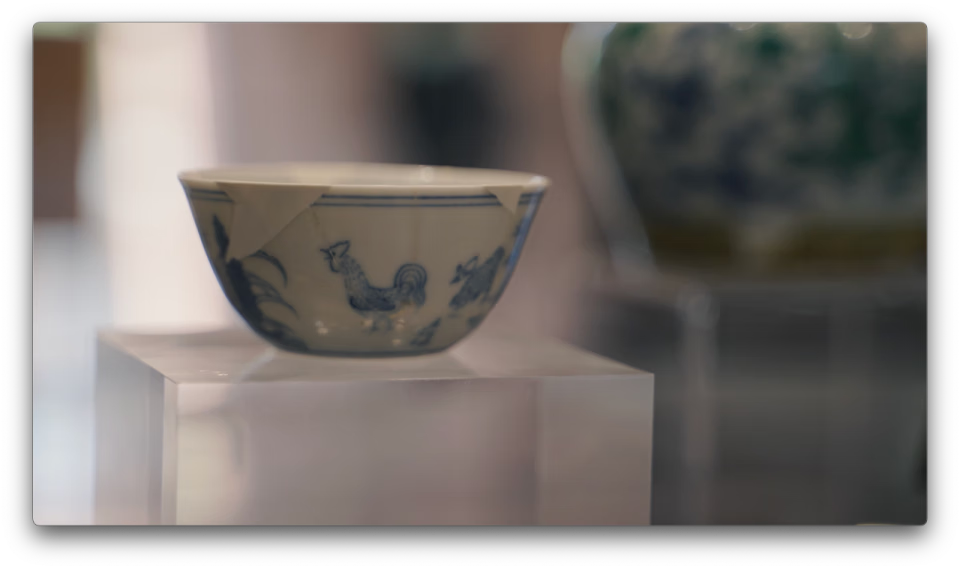 御窑博物馆内的明成化年间的半成品斗彩鸡缸杯。它的兄弟,一对斗彩鸡缸杯传世珍品,在2014年拍出了2.8亿港币天价。