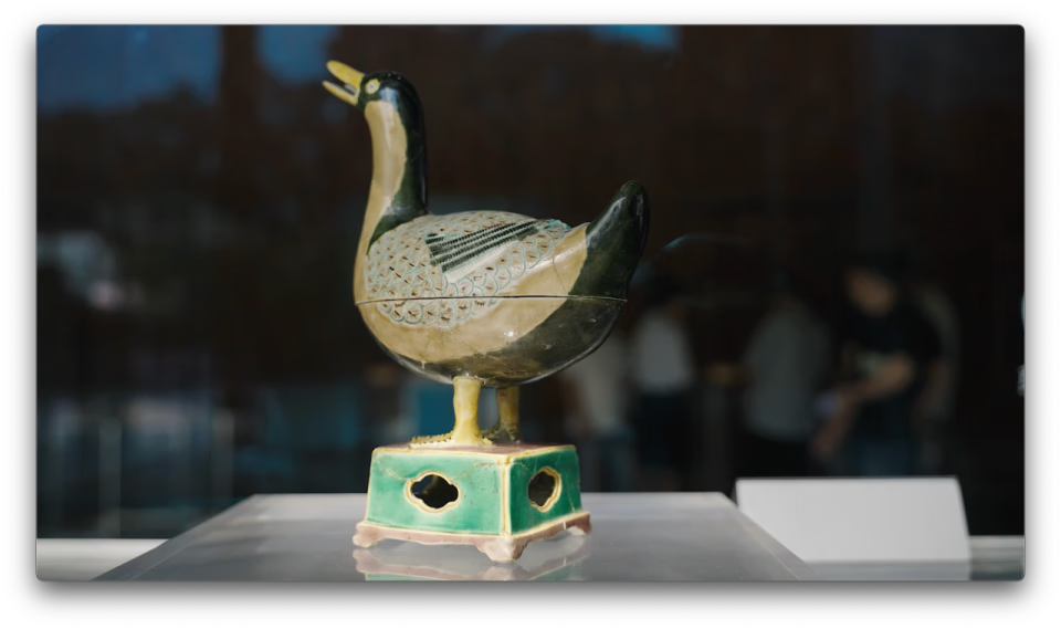 烧造于大明成化年间的“素三彩鸭形香薰”,1987年经考古出土现身,为御窑所独有,不见传世。