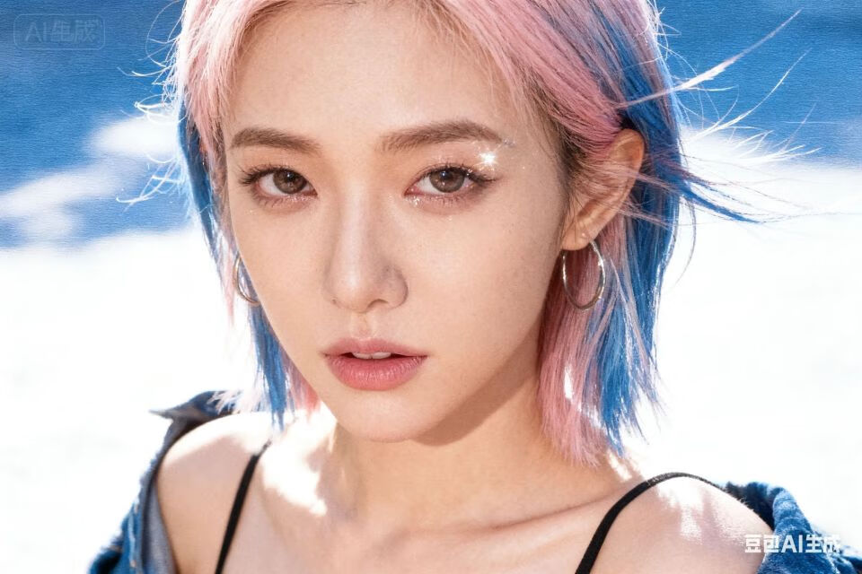 提示词是这样:采用细腻皮肤真实质感的风格,画面中展现了一个不改变原图形象的脸部特写,通过略微俯视的镜头角度进行呈现。背景营造出清醒系且阳光的场景氛围,有着散乱的头发随风飘动的感觉, 发型不变,发丝随风飘动,不改变原片发色。她的眼神闪闪发光,其中带着阳光和魅惑的情绪,尽显魅惑高冷的气质。画面着重勾勒了少女的面部细节,高先处理十分讲究,同时画面虽现出带有摄影机极蓝噪点的画质,并且有着蓝白色通透效果。原比例。