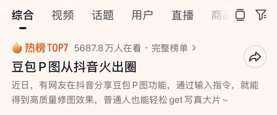 正好抖音上豆包P图又破圈了,直接上了热搜。