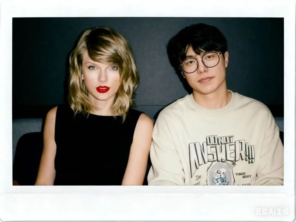 帮我生成用拍立得相机拍的图片。 没有明确的拍摄对象或工具。 要看起来像偶然拍到的漫不经心的快照。 照片要有轻微的晃动感,照明要扩散到整个照片上。【图中一共有几个人,每个人如何面对镜头】,照片要4:3的比例。 不要换脸,照片不能太清晰,要有那种胶片拍立得感,人物的脸不能变,脸型、五官比例、五官都一模一样,最后生成的照片要有白色拍立得边框。