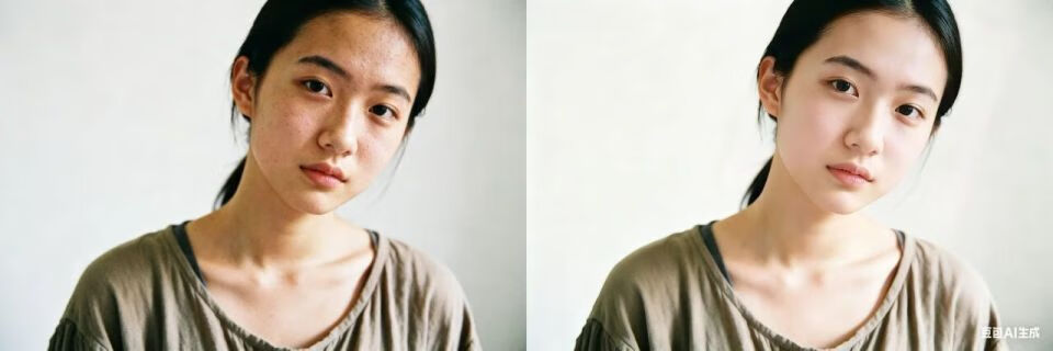 完整的提示词是这样的:给女孩的脸颊和额头进行磨皮和美白,保留皮肤和毛孔质感。