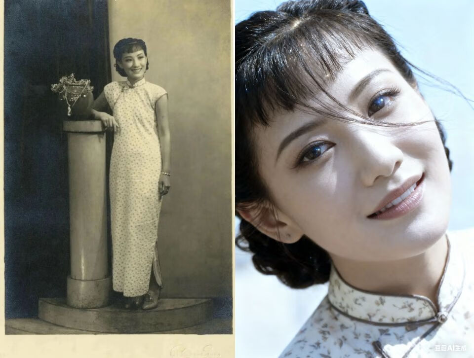这是我用民国影星的老照片+这段提示词重新生成的照片。