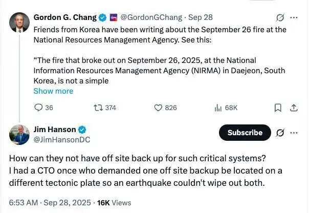 此次事件无疑会在社交媒体上引发无数帖子,质疑韩国为何如此依赖单一数据中心。