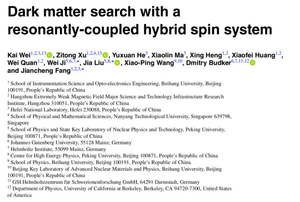 2.Kai Weiet al. Dark matter search with a resonantly-coupleed hybrid spin system.Rep. Prog. Phys. 88 057801,2025. https://doi.org/10.1088/1361-6633/adca52