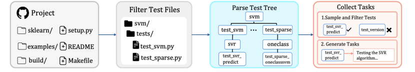不同于以往依赖现成仓库或提供详尽文档的设置,RepoCraft不提供完整架构蓝图,还涵盖6个真实项目、共1052个任务: