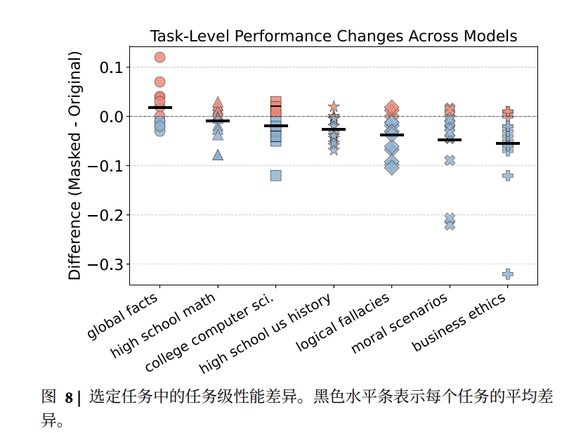 经过精密的计算和筛选,他们发现:在拥有数十亿甚至更多参数的庞大模型中,驱动ToM能力的关键参数,其数量占比仅为 0.001%。这是一个极其稀疏、高度集中的“心智核心”。这一发现本身就颠覆了许多研究者关于高级能力在神经网络中“广泛分布”的传统认知。