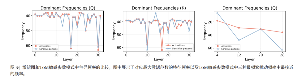 而且研究人员还通过进一步的搅动比较发现,那些稀疏的“心智核心”参数在模型中的作用,与“主导频率”的模式精确地对齐。
