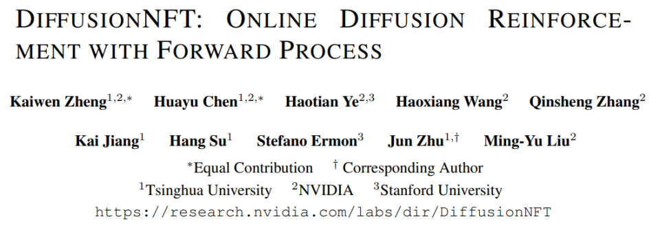 论文标题:DiffusionNFT: Online Diffusion Reinforcement with Forward Process