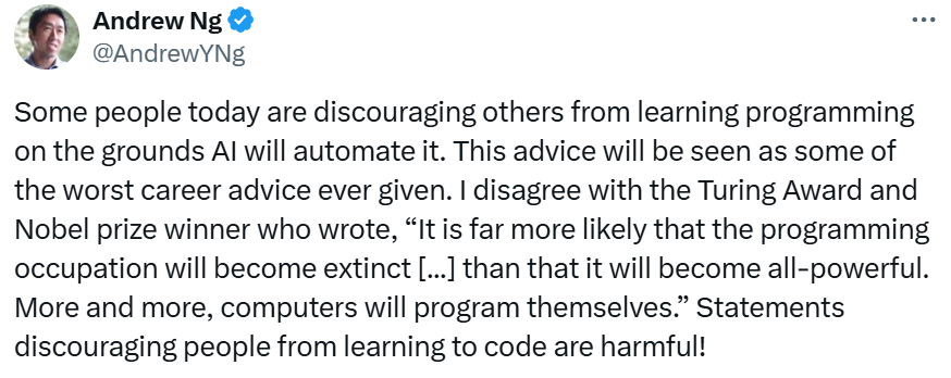 吴恩达指出:学习编程和其他基本技能仍然是未来的关键。