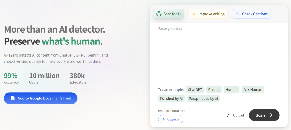 GPTZero,检测文字是否由AI生成