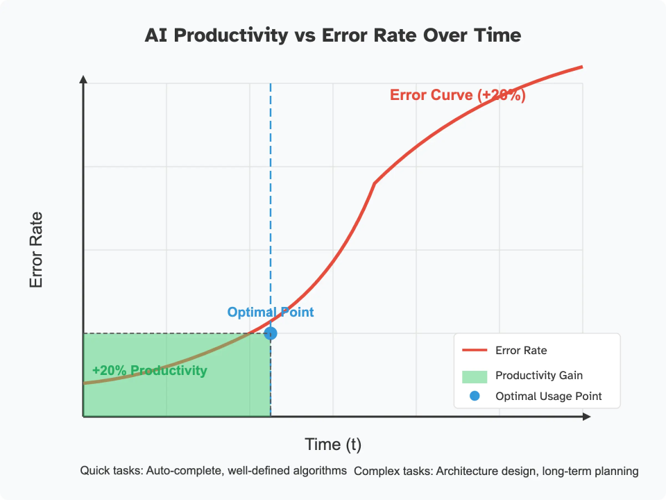 对于短期任务,AI能够有效节省时间,但如果涉及到需要深度思考的任务,过度依赖AI可能会带来更多潜在的错误。