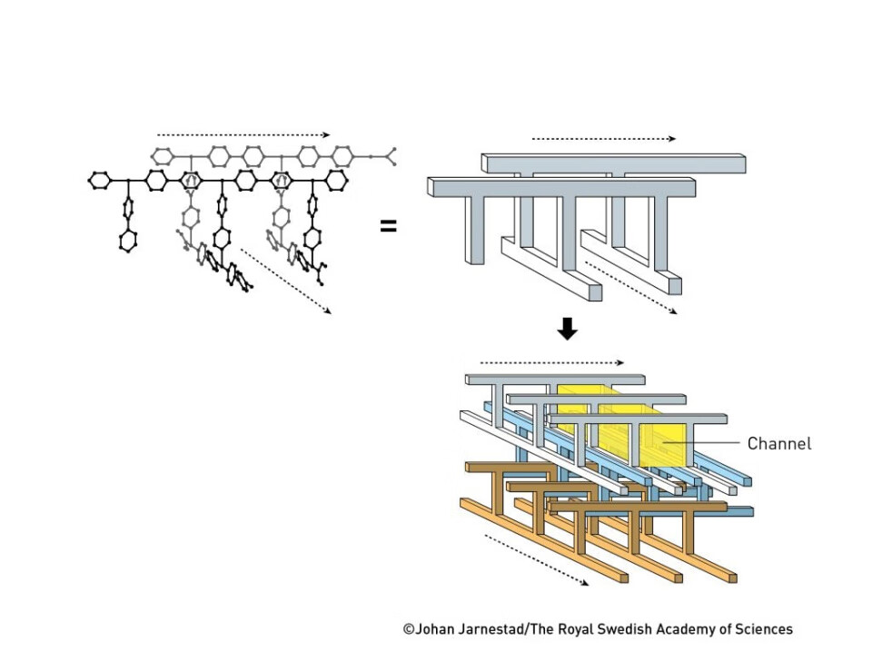 图丨1997 年,Kitagawa 成功制备出一种被开放通道交错的金属有机框架(来源:Nobel Prize)
