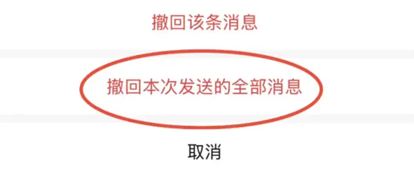 选择「撤回本次发送的全部消息」即可一次性撤回本次发送的所有消息(包括文字、图片、语音等),无需逐条操作,再也不怕发错消息时手忙脚乱却撤不完的情况。