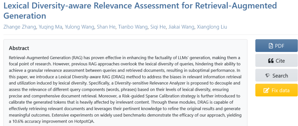词汇多样性感知的检索增强生成(Lexical Diversity-aware RAG,DRAG)方法应运而生。