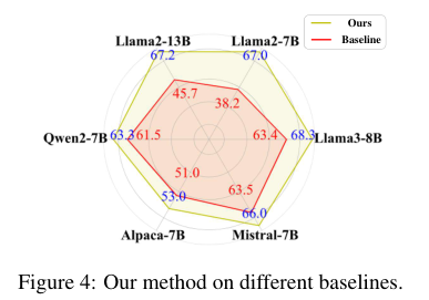 DRAG 在不同大模型上,不管是 Llama2-7B 还是 Mistral-7B,都能给它们带来显著的性能提升,尤其是 Llama2-7B-Chat,准确率从 38.2% 一下子拉到了 67.0%,效果拔群。这证明 DRAG 是个通用插件,而不是某个专属模型的“外挂”。