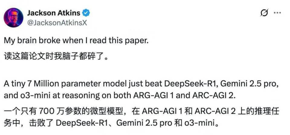 700万参数击败DeepSeek R1等,三星一人独作爆火,用递归颠覆大模型推理