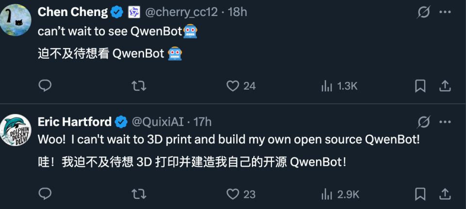 这次成立具身智能团队,意味着 Qwen 有意让自家模型正式走入物理世界。这不仅能检验模型在真实场景中的理解、规划与执行能力,也能反向促进模型能力的演化。在物理世界中,模型必须面对复杂的反馈、噪声与不确定性,这将迫使其在感知融合、因果推理和长程记忆等方面不断进化。更重要的是,具身化还为 Qwen 带来新的数据与应用空间,让模型从文字世界延展到机器人、自动化、交互式设备等更广阔的落地场景。