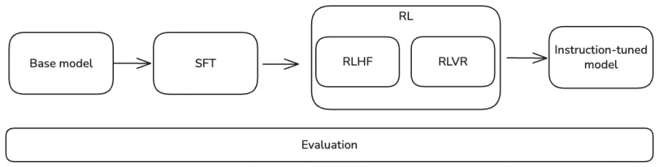 目前,主流的后训练技术包括监督微调(SFT)和基于人类反馈的强化学习(RLHF)等。