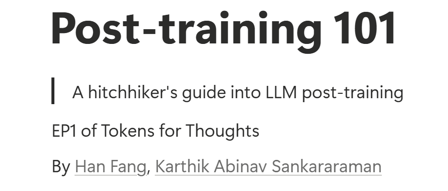 既然后训练这么重要,那么作为初学者,应该掌握哪些知识?大家不妨看看这篇博客《Post-training 101》,可以很好的入门 LLM 后训练相关知识。