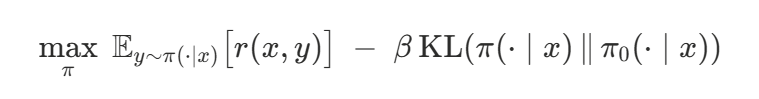 上述公式旨在最大化期望奖励,同时通过 KL 散度来进行正则化约束。