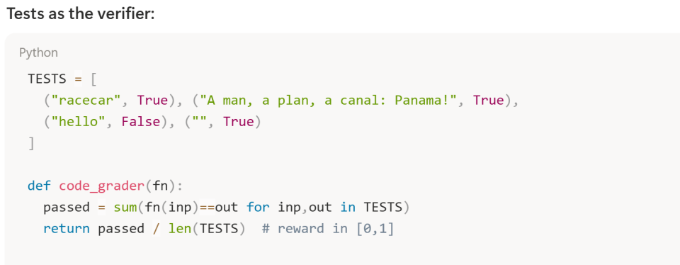 RLVR(基于可验证信号的强化学习) 在提升数学推理与代码能力方面表现突出,它使用真实答案、单元测试、代码执行结果等可验证信号作为精确的奖励来源。