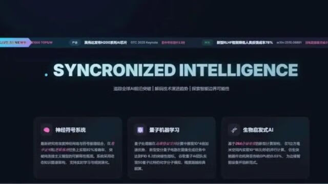 提示词:请给前沿科技媒体机器之心设计一个前沿风格网页,要求置顶部分滚动播出实时AI新闻。这一次意外惊喜来自鼠标轨迹,有粒子浮动效果,科幻又浪漫。