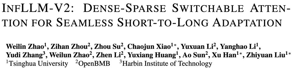 在今年6月,OpenBMB联合清华提出了InfLLM-V2架构,并基于该架构共同发布了首个开源的原生稀疏注意力模型MiniCPM4,并在9月初开源了混合思考版本MiniCPM4.1