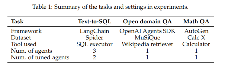 研究团队在多个任务上对Agent Lightning框架进行了实验验证,涵盖Text-to-SQL、开放域问答、数学问答等。