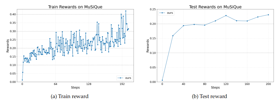 最终的奖励取决于Agent是否正确回答了问题,模型的性能也通过测试集上的答案准确度进行评估。