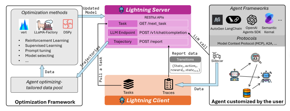 Agent Lightning通过过渡来建模和组织数据,使集成额外算法更加方便。