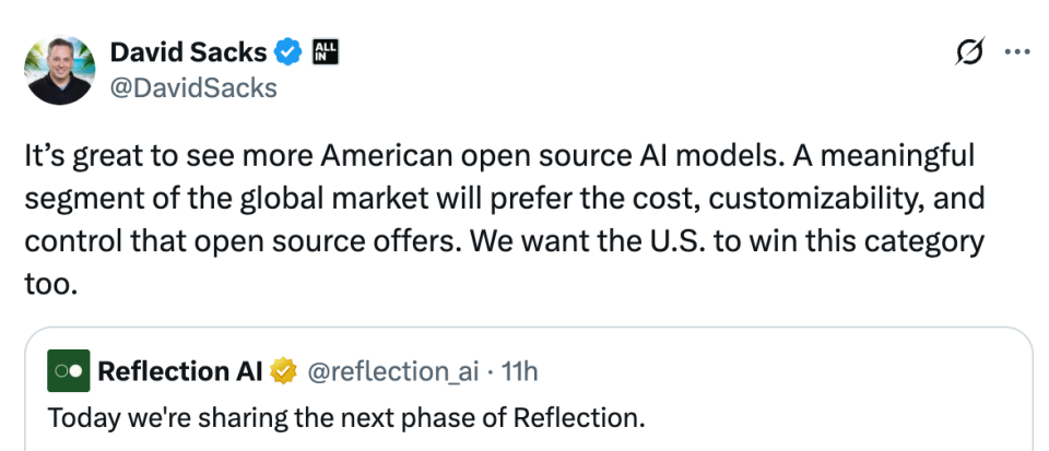 在美国科技圈,Reflection AI 的新使命受到了普遍欢迎。