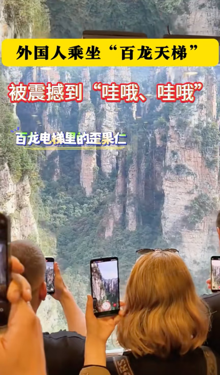 据悉,百龙电梯运行速度高达5米/秒,单程运行时间最短可达66秒,总运力每小时升至约6000人,凭借“世界上最高的全暴露观光电梯”斩获吉尼斯纪录。