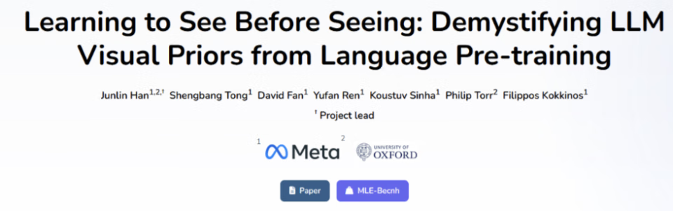 近日,Meta 超级智能实验室(Meta Superintelligence Labs)与牛津大学的研究者发布了一篇长达 33 页的重磅论文,通过超过 100 组受控实验、耗费 50 万 GPU 小时的庞大研究,系统性地揭开了 LLM 视觉先验的来源。 作者提出,视觉先验可分为「推理先验」和「感知先验」,并给出了一套预训练的数据混合配方,用于在只用文本预训练阶段就「播下」视觉能力的种子。