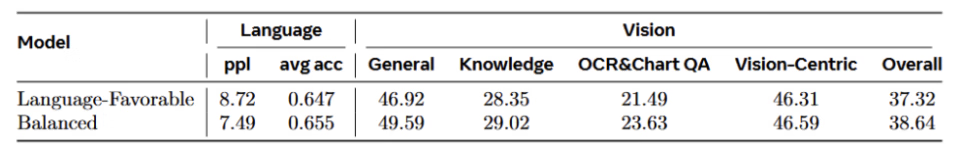 基于以上发现,研究团队的目标从「解释现象」转向了「主动创造」。他们通过系统的实验,最终调配出了一套最优的数据混合方案,旨在平衡模型的语言能力和视觉潜力。