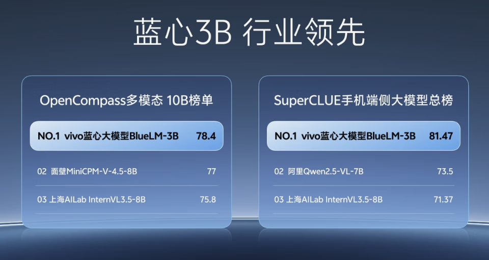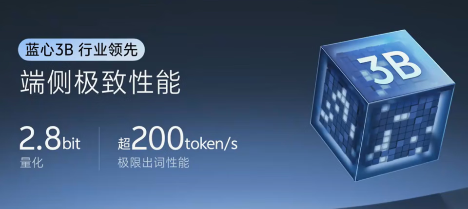 其中的 30 亿参数模型,可以在如今的旗舰手机 SoC 上流畅运行。vivo 表示,经过一系列优化,蓝心 3B 端侧大模型以 60% 的参数量,效果即可比肩行业最优的 4B 级纯语言模型,推理速度可达 200 Token/s:这并非一次性能上的妥协,而是一次极致优化的胜利。