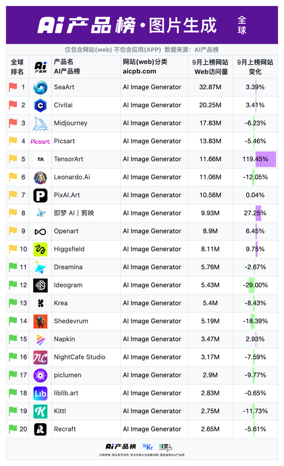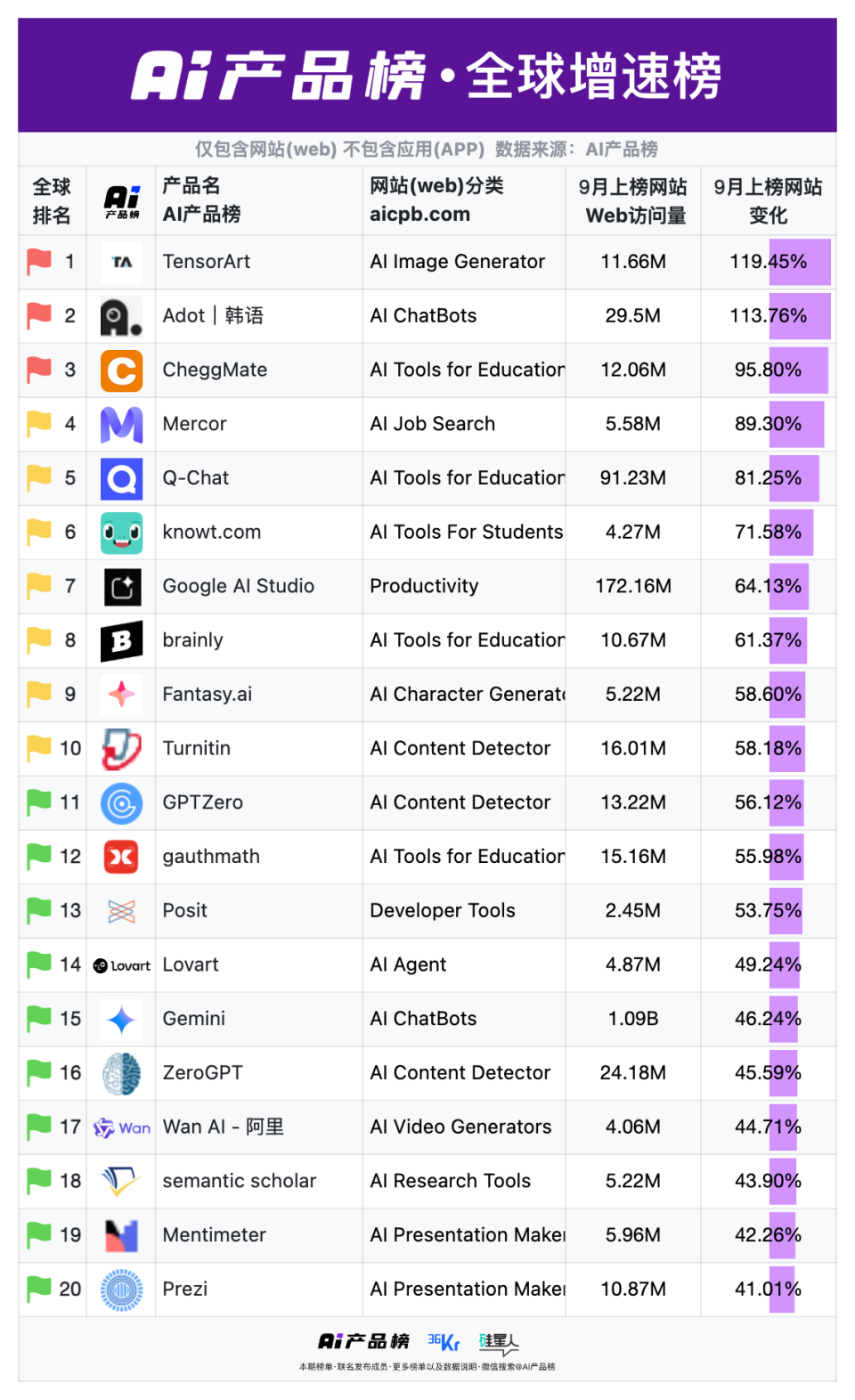 为了方便阅读,请前往 AI产品榜 aicpb.com 官网查看全球总榜TOP100 完整榜单。也欢迎看关注AI产品榜,跟一群有结果的AI创业者同行