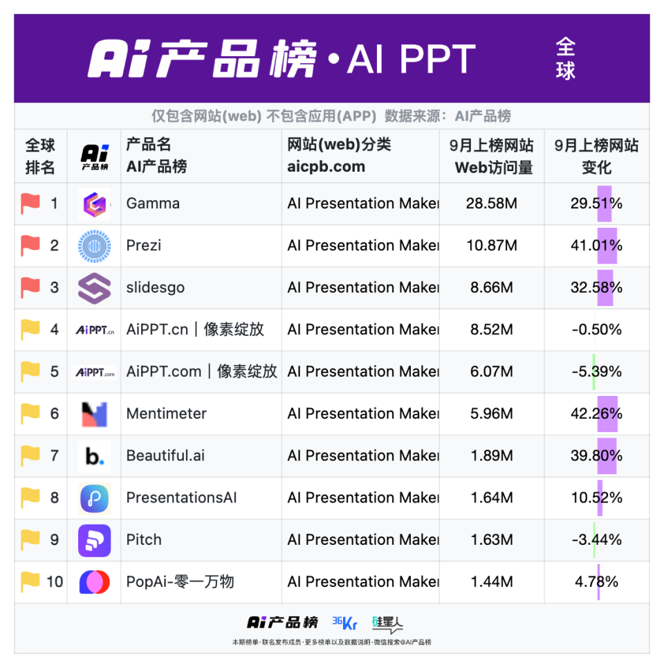| | 全球·增速/降速榜 | | 全球AiPPT工具 |