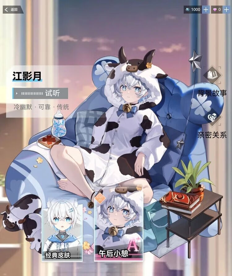 我体验你们产品的时候,就感觉到你们的角色很萌、很生动,比如有一个角色会呆毛旋转,还有B站博主影月月的AI角色,有一套奶牛睡衣皮肤,这些细节很戳二次元用户的萌点。