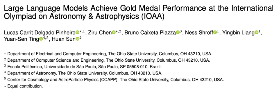 论文标题:Large Language Models Achieve Gold Medal Performance at the International Olympiad on Astronomy & Astrophysics (IOAA)